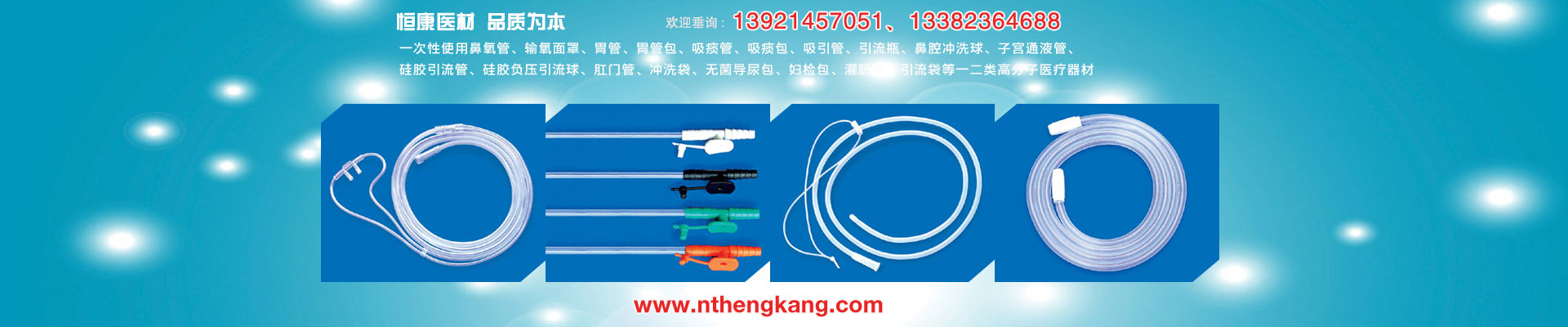 “品質(zhì)求優(yōu)、服務滿意、有效保持、持續(xù)發(fā)展”是恒康的質(zhì)量方針,本公司在有關專家的支持下,借鑒國內(nèi)同類產(chǎn)品的優(yōu)點,開發(fā)了硅膠胃管、鼻氧管、子宮通液管、吸痰管、負壓球、引流袋、連接管等一二類高分子醫(yī)療器材近20個產(chǎn)品,100多個規(guī)格型號,產(chǎn)品遍步全國20多個省市和自治區(qū),部分產(chǎn)品出口東南亞、西歐等地區(qū),深得用戶的信賴和好評。